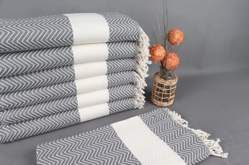 Turkish Beach Towel Organic Cotton Dark Gray-White Chevron, 40x71 Inches