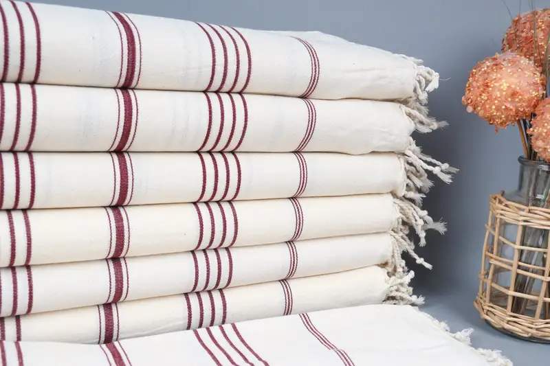 Beach Towel Monogrammed Turkish Cotton Burgundy Stripes, 40x71 Inches