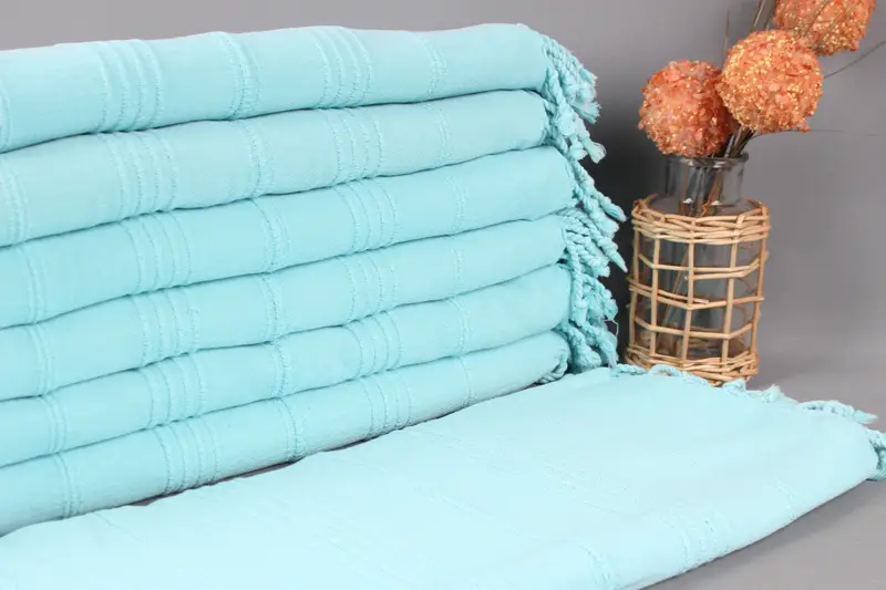 Personalized Turquoise Striped Towel, Organic Cotton, 36x67 Inches