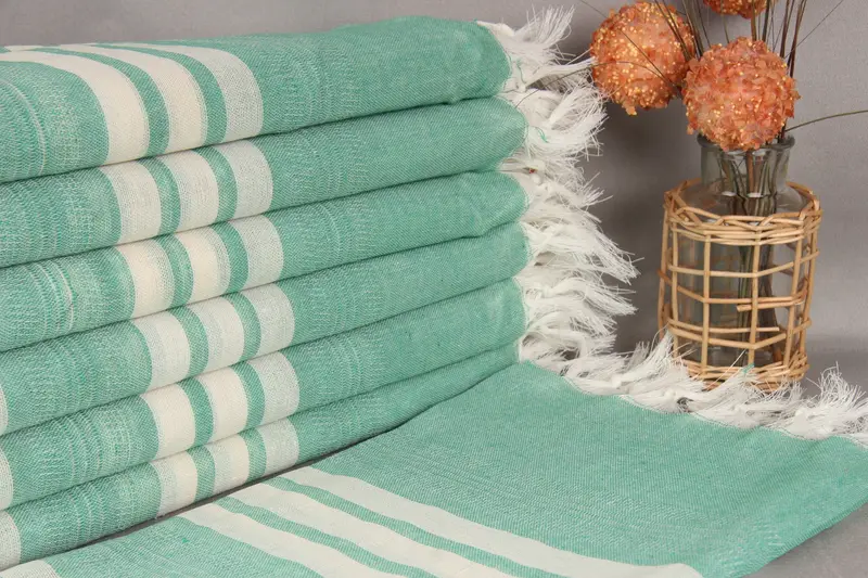 Personalized Turkish Organic Cotton Green Striped Towel, 40x67 Inches