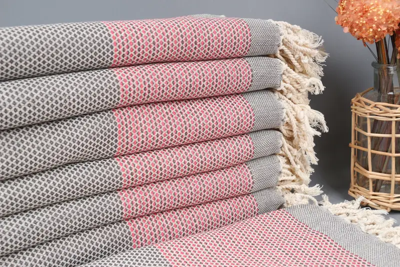 Personalized Turkish Towel Dark Gray-Pink Geometric, Organic Cotton, 40x71 Inches