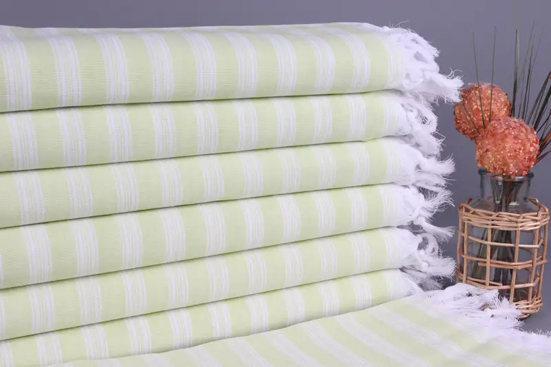 Personalized Pistachio Green Striped Towel, Organic Cotton, 40x71 Inches