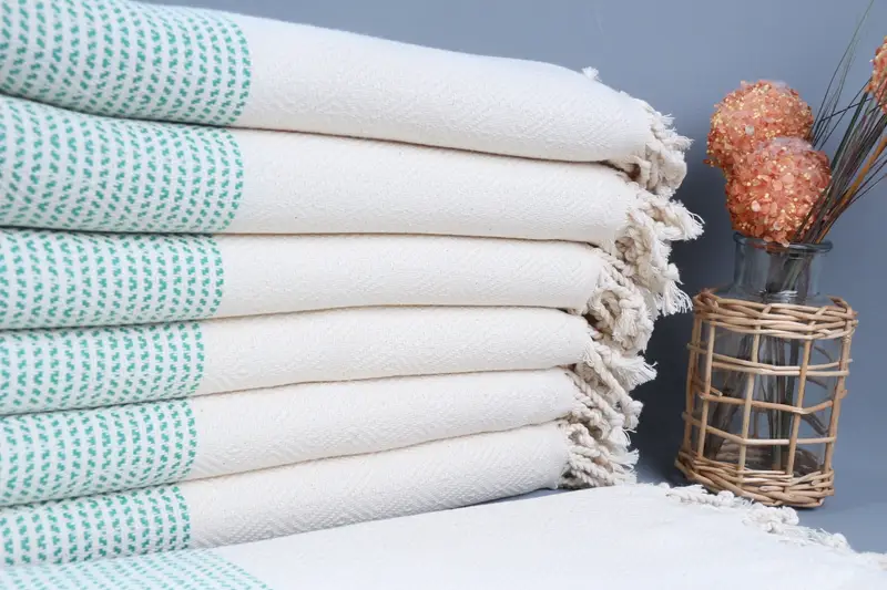Organic Cotton Green Towel, Diamond Pattern, 40x71 Inches