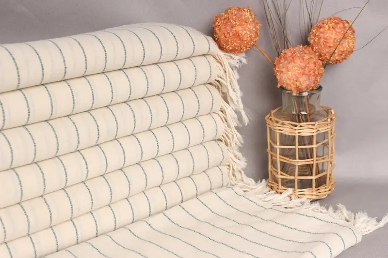 Turkish Towel Organic Cotton Petrol Blue Stripes, 36x67 Inches