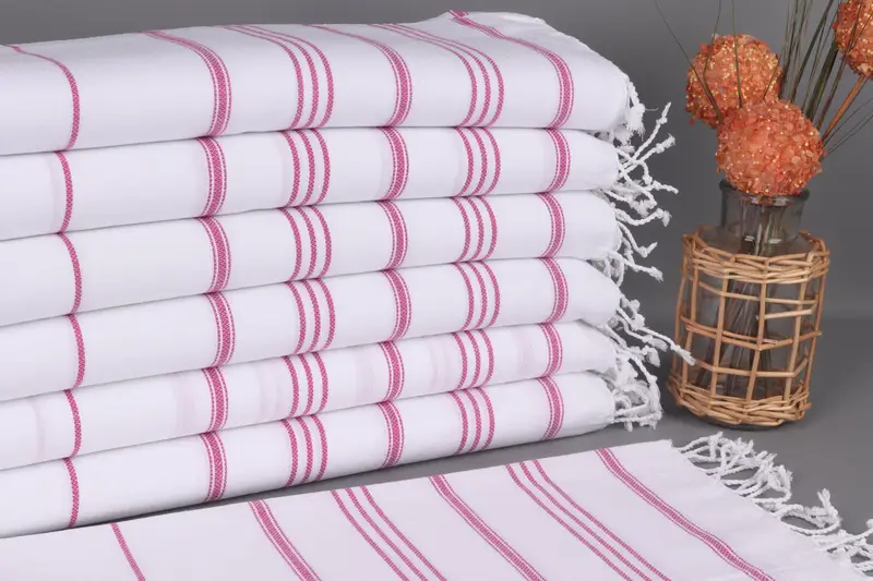 Hanging Kitchen Hand Towel Fuchsia Striped Organic Cotton, 24x40 Inches