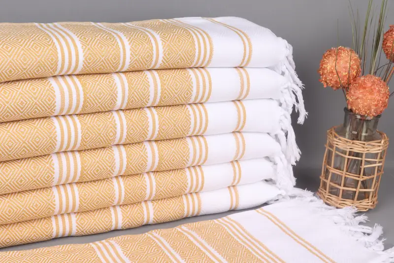 Monogrammed Tea Towel Custom Dish Towel Mustard-White Diamond Towel, 18x40 Inches