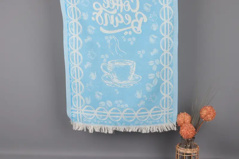 Customized Turkish Hand Towel Blue Coffee Pattern, 20x28 Inches
