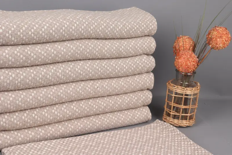 Embroidered Dish Towel Beige Herringbone, Organic Cotton, 20x32 Inches