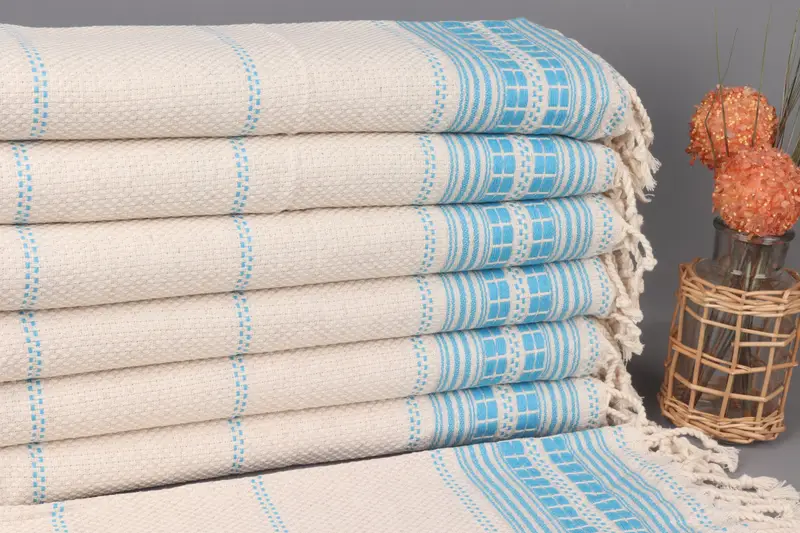 Turkish Hand Towel Turquoise Organic Cotton, 20x40 Inches