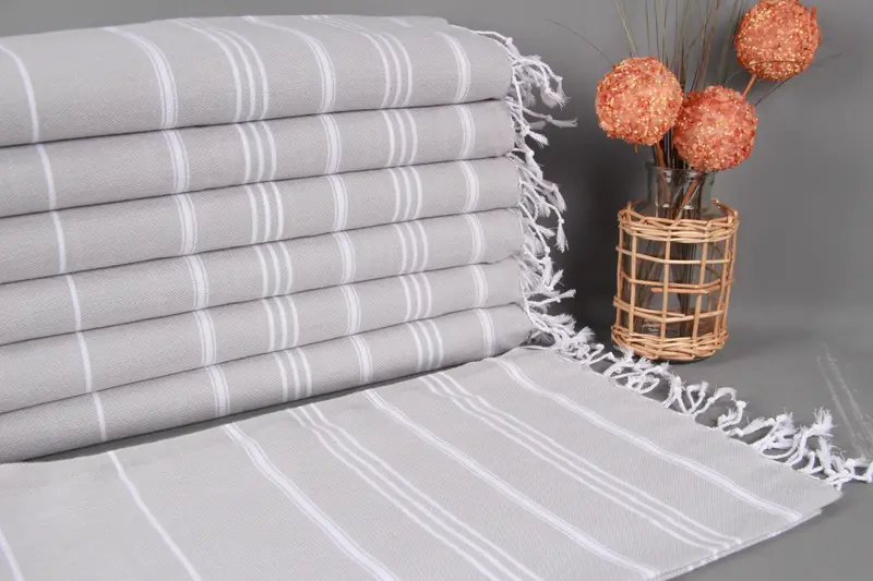 Hair Drying Towel, Hanging Kitchen Hand Towel, Light Gray Striped, 24x40 Inches
