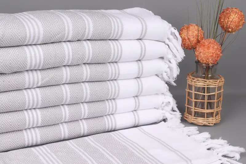 Customized Hand Towel Organic Cotton Gray-White Diamond Pattern, 18x40 Inches