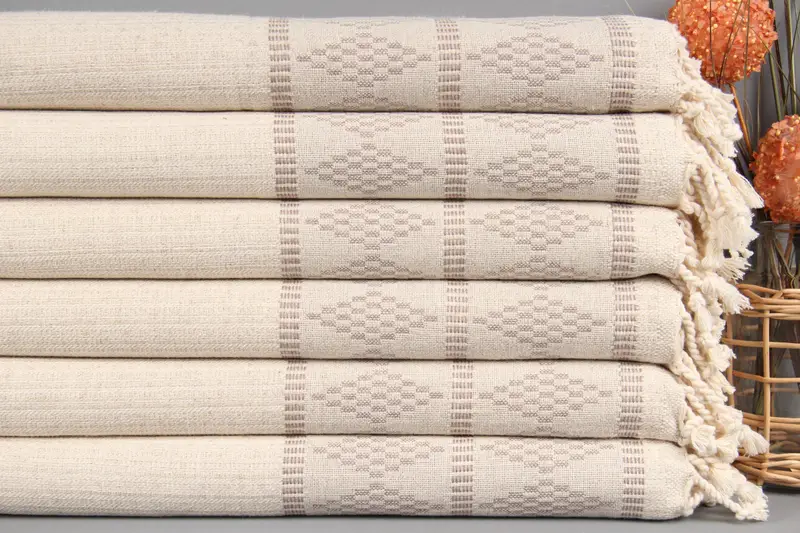 Turkish Hand Towel Brown Kilim Design, Organic Cotton, 20x40 Inches