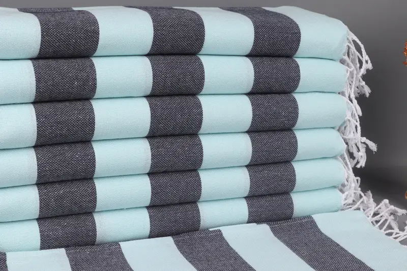 Dish Towel Mint-Navy Blue Striped, Organic Cotton, 20x40 Inches