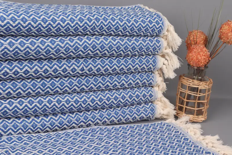 Hanging Kitchen Towel Sax Blue Organic Cotton, Diamond Pattern, 18x36 Inches