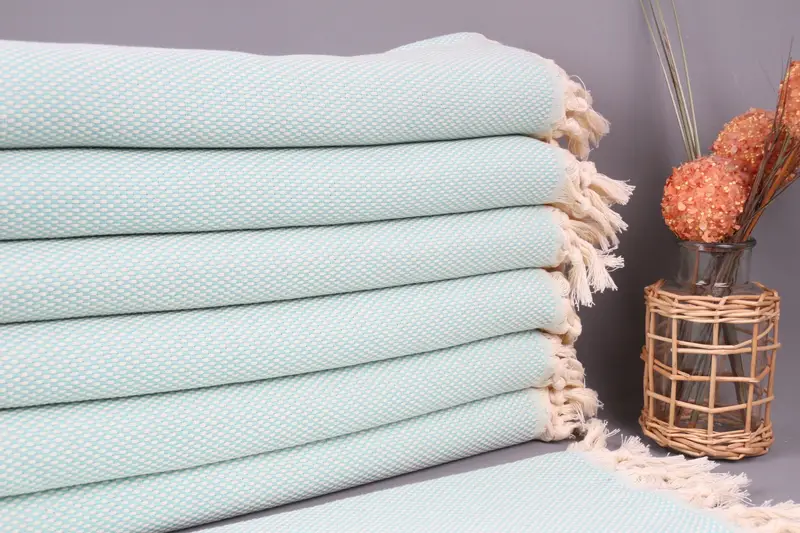 Customized Tea Towel Mint Polka Dot, Organic Cotton, Beige, 18x36 Inches
