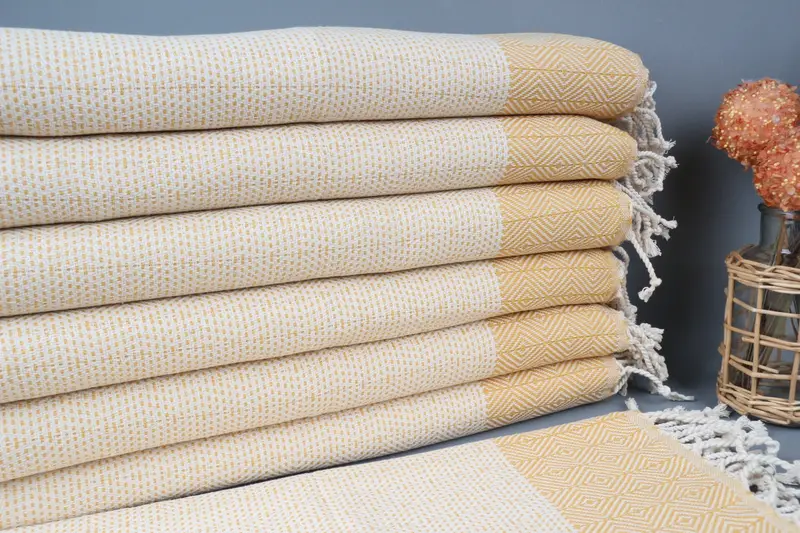 Turkish Tea Towel Organic Cotton Mustard Diamond, 18x36 Inches