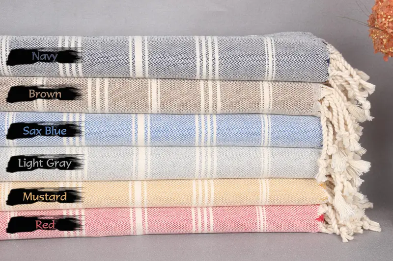 Wedding Gift Striped Turkish Hand Towel Organic Cotton Beige 24x38 Inches