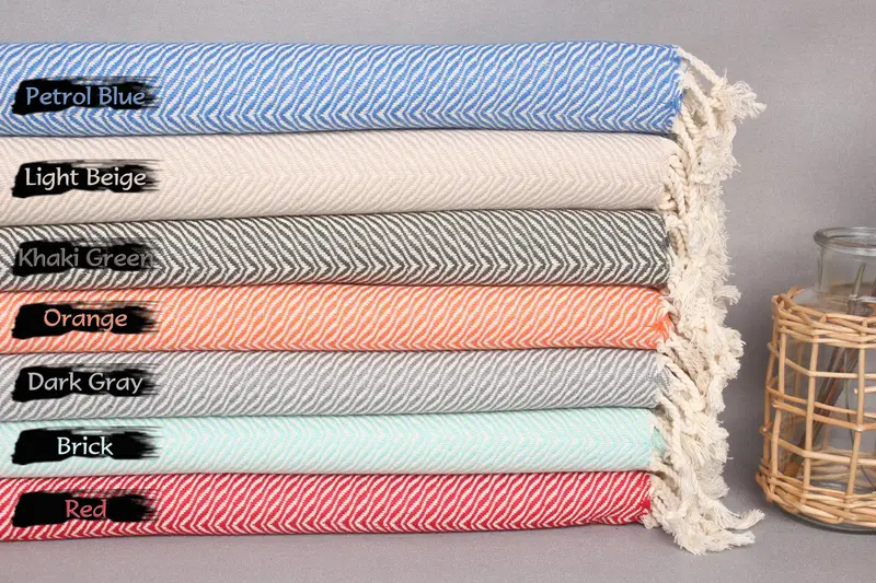 Personalized Kitchen Towel Organic Cotton Chevron, Beige, 20x40 Inches