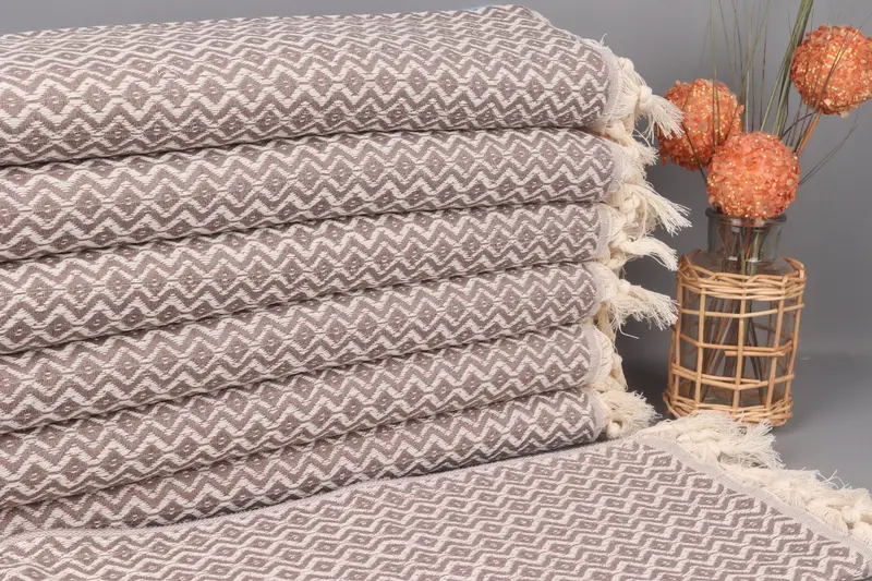 Hanging Kitchen Hand Towel, Handwoven Dish Towel, Brown, Diamond, 18x36 Inches