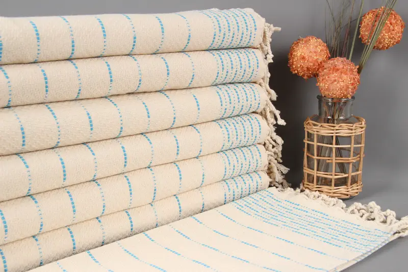 Custom Dish Towel Turquoise Striped, Organic Cotton, 18x36 Inches