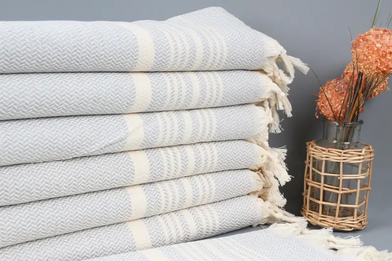 Cotton Woven Dish Towel, Light Gray Striped, 18x40 Inches