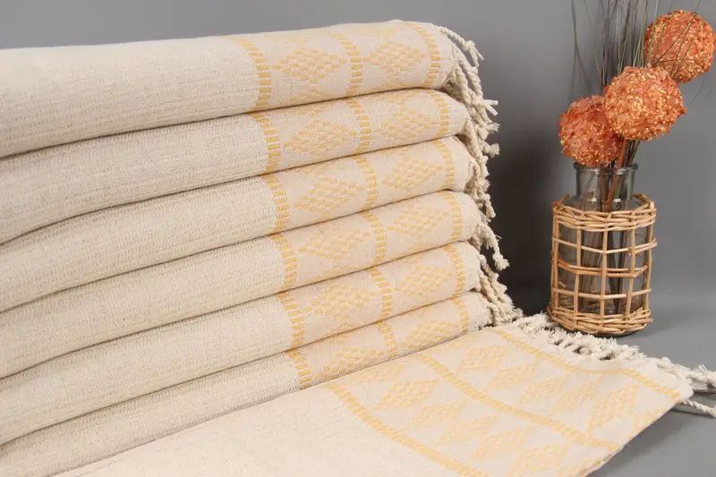 Cotton Dish Towel, Mustard Kilim Design, Beige, 20x40 Inches