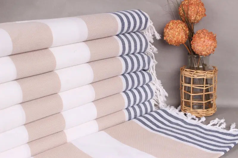 Bachelorette Party Gift Navy Blue-Beige Organic Cotton Towel, 24x40 Inches