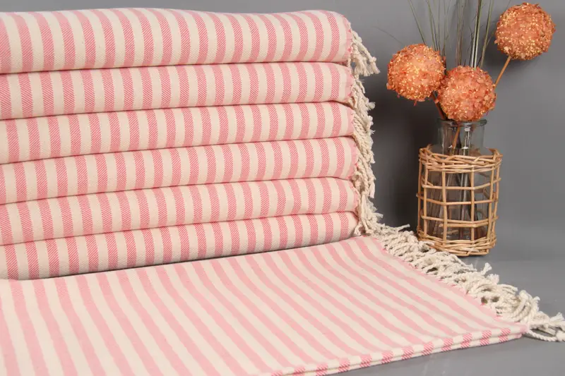 Hair Drying Towel Cotton Tea Towel Dark Pink Chevron, 24x40 Inches