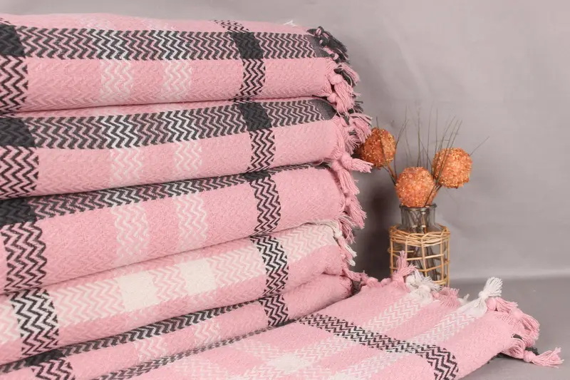 Home Decor Gifts Pink Cotton Throw Blanket, 79x89 Inches