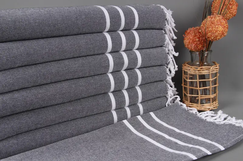 Dish Towel Black Striped Organic Cotton, 18x40 Inches