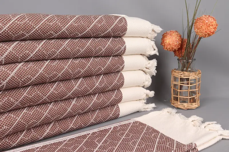 Bathroom Face Towel Turkish Hand Towel Brown Geometric, 18x36 Inches
