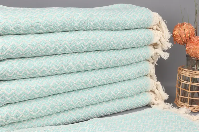 Monogrammed Kitchen Towel Embroidered Mint Diamond, Beige, 18x36 Inches