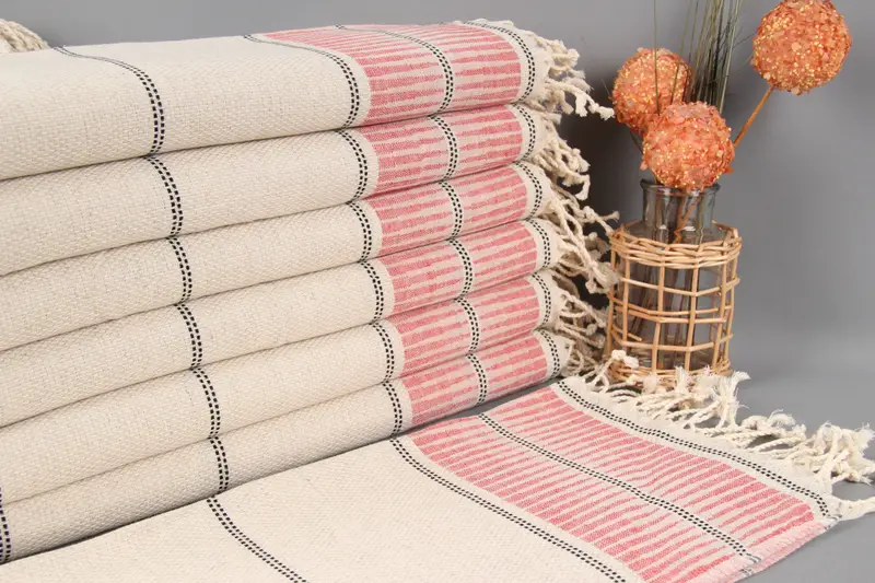 Bathroom Hand Towel Monogram Red Striped 20x40 Inches Linen Towel
