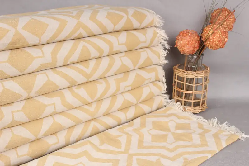 Embroidered Hand Towel Mustard Tulip Patterned Bath Towel, Beige, 24x40 Inches