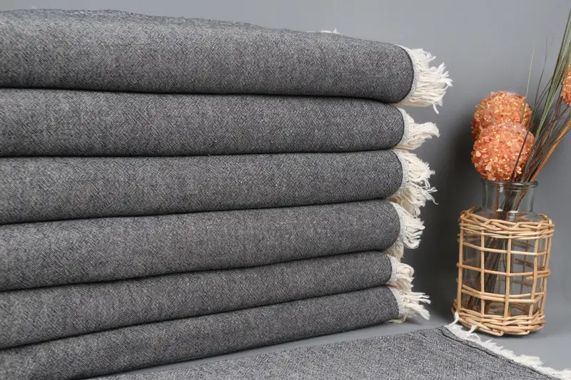 Custom Embroidered Dish Towel Black Solid Organic Cotton, 24x40 Inches