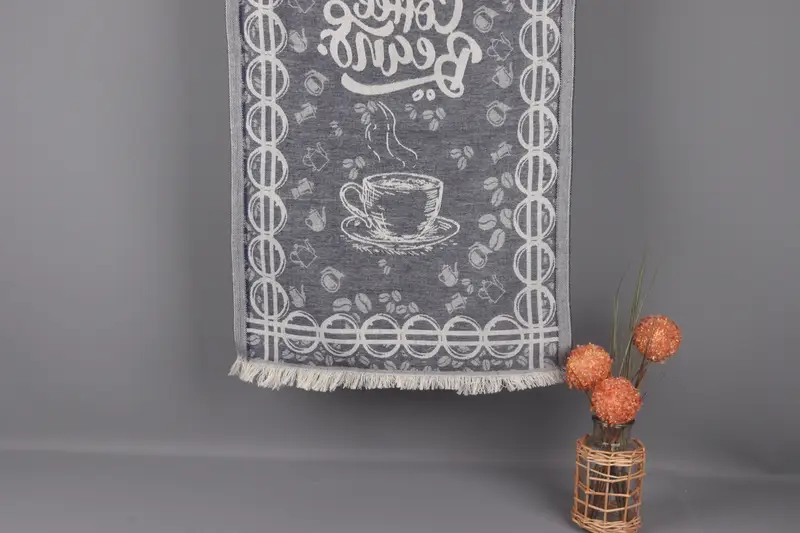 Hand Towel Dark Navy Blue Coffee Patterned, Organic Cotton, 20x28 Inches