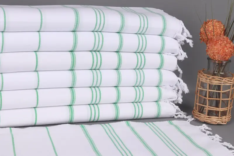 Customized Hand Towel Green Striped Organic Cotton, 24x40 Inches