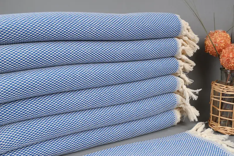 Personalized Hand Towel Sax Blue Polka Dot, Organic Cotton, 18x40 Inches