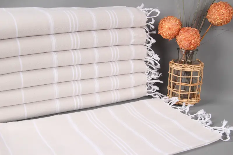 Monogram Hand Towel, Light Beige Striped, Organic Cotton, 24x40 Inches