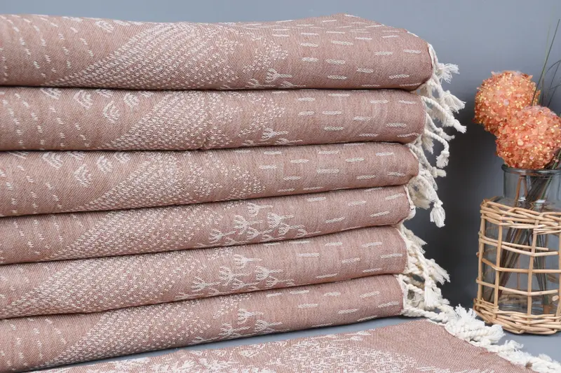 Monogram Hand Towel Brown Mountain Patterned, Beige, Organic Cotton, 18x36 Inches