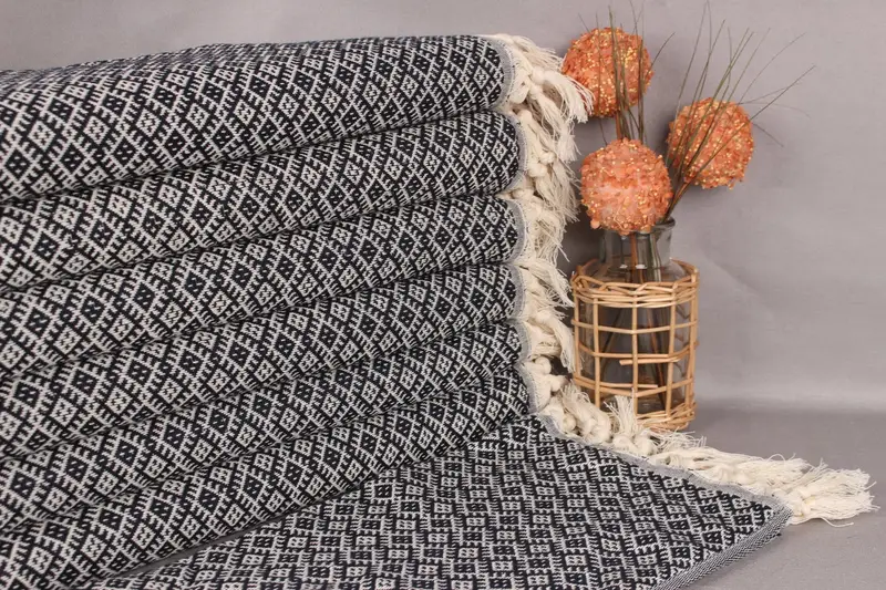 Hand Towel Personalized Organic Cotton Navy Beige, 20x38 Inches