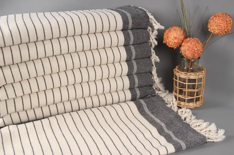 Hand Towel Organic Cotton Woven Cream Striped, 22x40 Inches