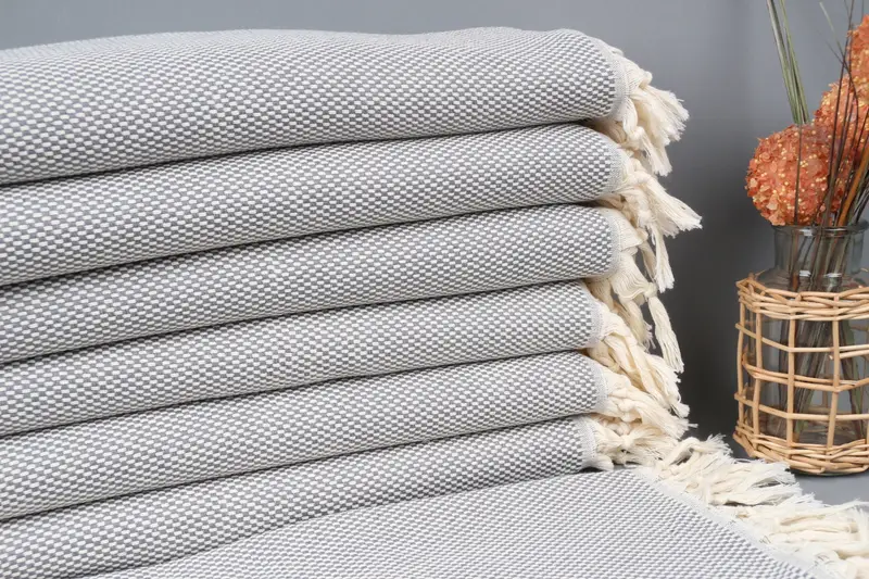 Monogram Tea Towel Dark Gray Polka Dot, Organic Cotton, 18x40 Inches