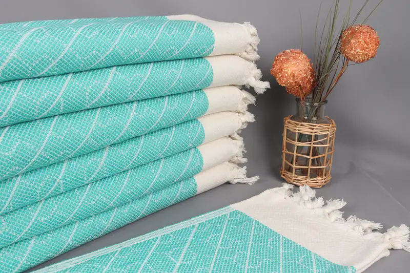 Custom Embroidered Benetton Green Geometric Hand Towel, Organic Cotton, 18x36 Inches