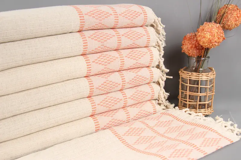 Personalized Kilim Design Tea Towel, Orange & Beige, Linen, 20x40 Inches