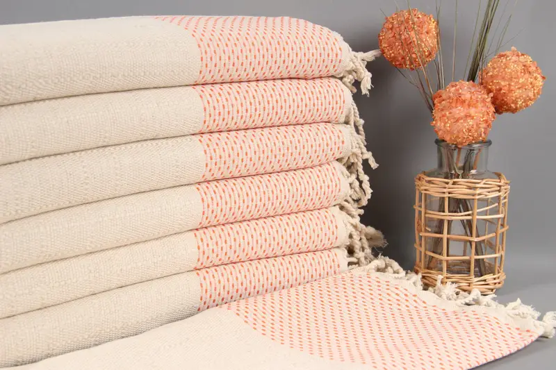 Personalized Dish Towel Monogram Kitchen Towel Orange Beige Linen 20x40 Inches