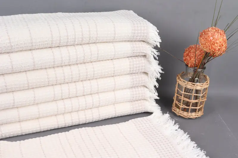 Face Towel Turkish Tea Towels Light Beige Waffle Washcloth, 20x40 Inches