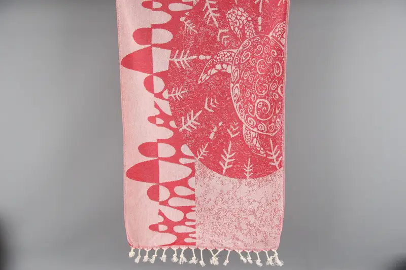 Embroidered Hand Towel Red Animal Print, Organic Cotton, 18x36 Inches