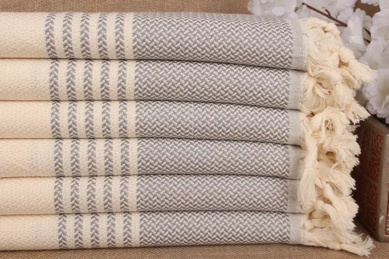 Striped Gray Cotton Towel Bath, Organic, 40x71 Inches