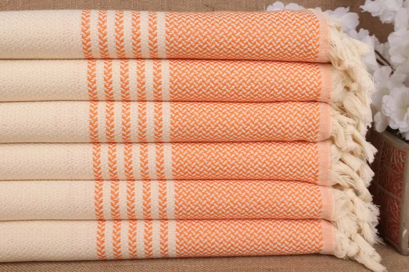 Striped Towel Organic Cotton Beach, 40x71 Inches, Beige